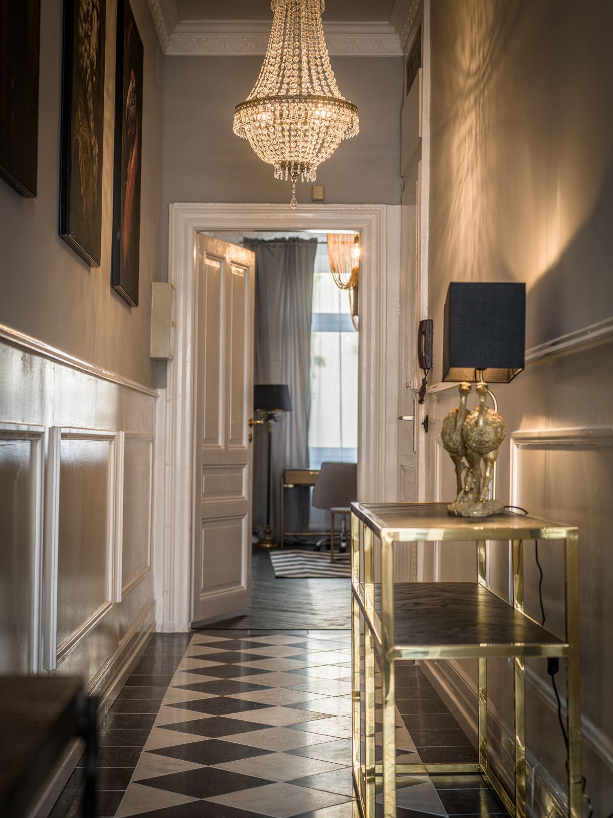 This magnificent apartment is on the second floor of an elegant historical building. In one of Frankfurt’s prime locations, the Nordend (U-Bahn Glauburgstr), on a quiet street – just a minute’s walk away from some of Frankfurt’s most popular restaurants and cafés. An opulent entrance area welcomes you with an Italian marble floor and artisanal wooden panelling. Velvet furnishings combined with smoked oak herringbone parquet flooring add an elegant touch to the room, while the dining table and ...