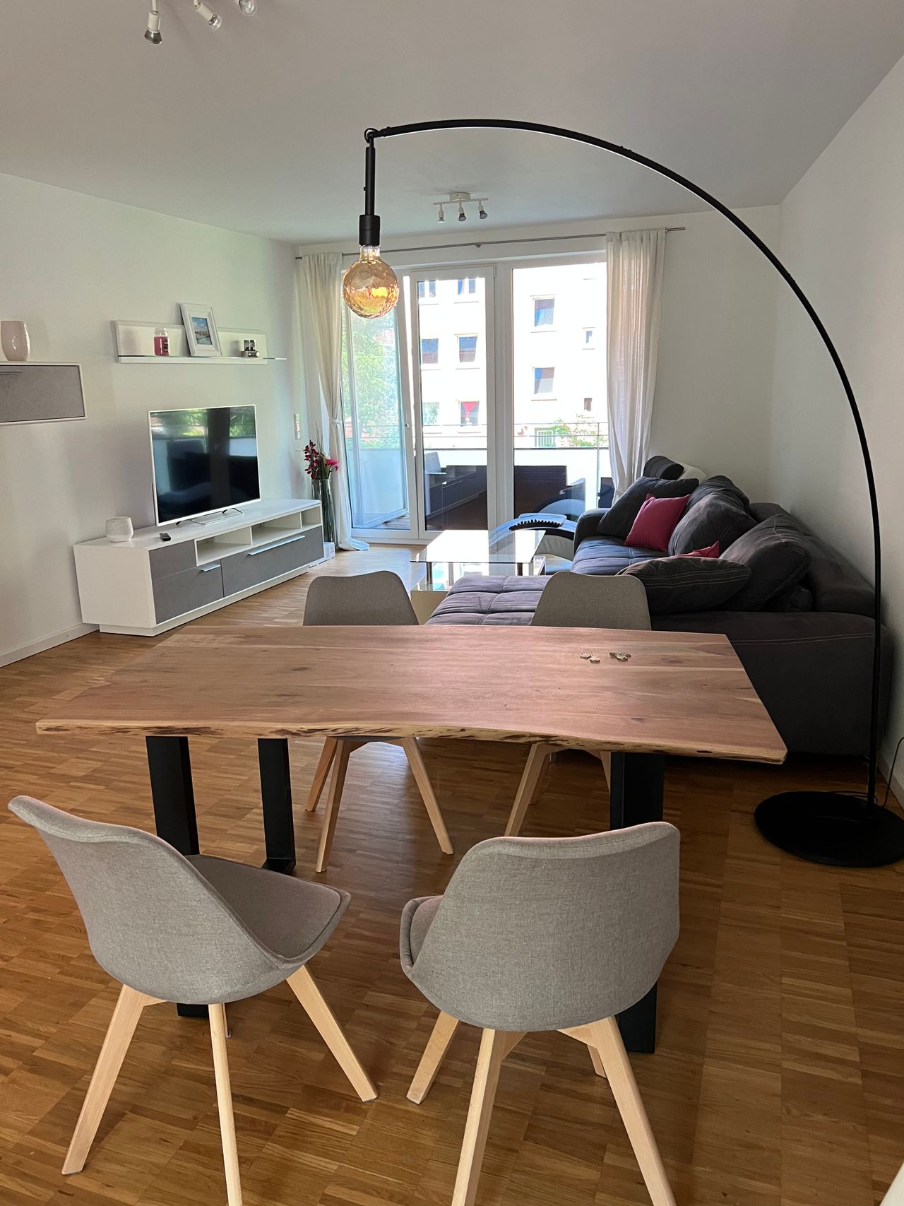 We would be happy to guide you through the apartment on site or in advance via Zoom Meeting. The Königstrasse S-Bahn station, a new gym and a small grocery store are a 5-minute walk away. Aldi, Edeka, Penny, IKEA and other shops can be found within 10 minutes on foot. The parking situation is very good in the area. Residential parking permit possible for a one-time fee of EUR 25 (no additional costs)