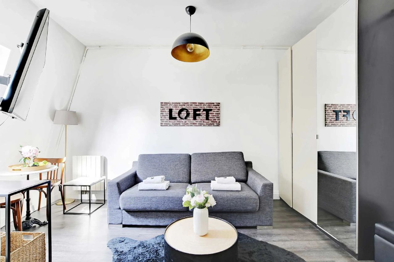 This is a 20m2 studio apartment on the 6th and last floor (without elevator) with a view of the Eiffel Tower, in a Haussmanian-style building: - A living room with sofa bed - Dining area with a marble table and renovated bistro chairs. - A fully equipped kitchenette (fridge, oven, microwave, dishwasher, induction hob, kettle, coffee machine...) - A shower room with WC - Storage space - High speed internet (WiFi) and TV - Bed linen and towels provided - Washing machine (washer/dryer) View of the...