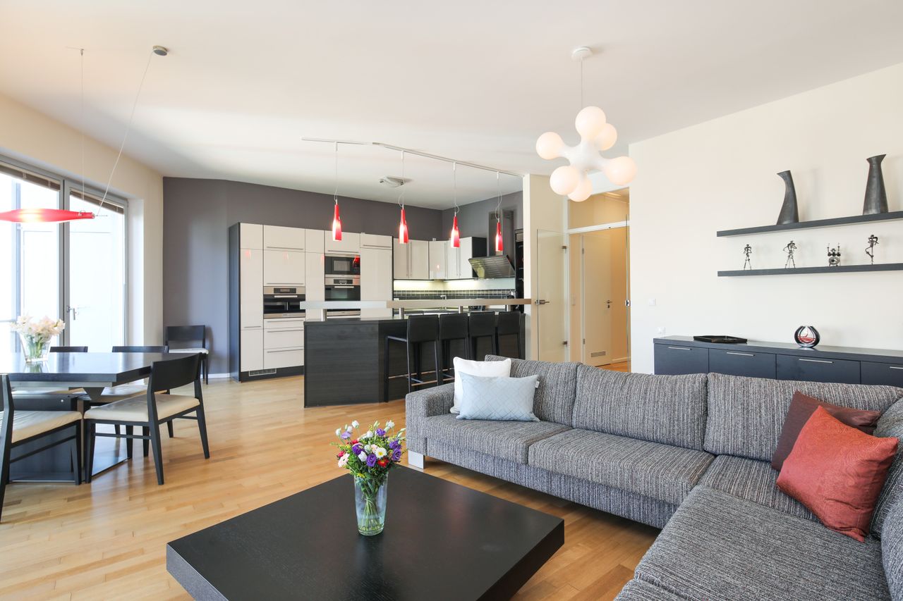 The modern and high-quality furnished 4-room apartment is located in a new building and has a walking distance of about 5 minutes to Alexanderplatz. The living room with generous corner sofa, Flat Screen TV is directly adjacent to the fully equipped and open Miele fitted kitchen with spacious bar counter and bar stools, and a separate dining area for 8 people. The apartment is equipped with one master bedroom (bed 180 x 200), shower, - tub bath ensuite and walk-in closet. The second bedroom (...