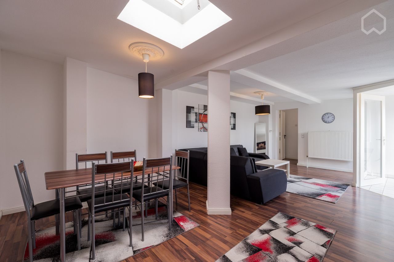 This beautiful 3-room maisonette offers everything you need to feel at home. The great little conservatory, the excellent location and the view of the roofs of Berlin give the flat the typical Berlin flair. and the large windows and the many lamps give the flat a wonderful warmth. The fully furnished flat offers space for three to four people. Bed linen, pillows and blankets are provided in sufficient quantities. The kitchen is fully equipped with high-quality built-in appliances such as a dis...