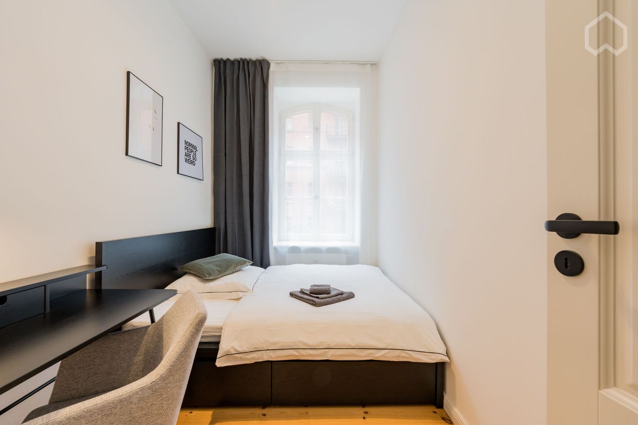 This lovely 2-bedroom SHARED apartment is located in a renovated listed monument and offers a fully equipped open kitchen connected to the living room which invites you to relax after a busy day in the heart of Berlin. This area features a nice dining table, as well as a cozy couch and Smart TV. The kitchen is fully equipped with any kitchen utensils such as coffee machine, water boiler, toaster, a small dishwasher and refrigerator with freezer. The bedroom are equipped with a super comfortable ...