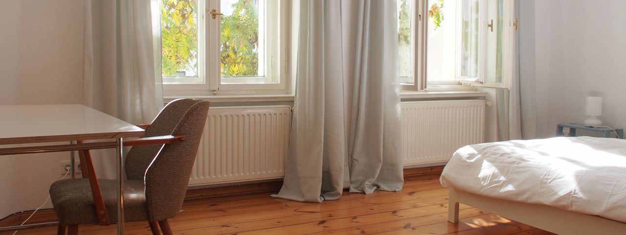 The apartment is located on the south-facing 2nd floor of a typical Berlin-style building from the turn of the 19th century in Prenzlauer Berg. It is tastefully furnished with a mix of antique and modern furniture, a comfortable double-bed, a separate bathroom (incl. iron and board if required) and a fully equipped kitchen. We also have free Wifi/WLAN, a TV, and a Radio. The apartment has parquet flooring and is very quiet. The location is just north of Mauerpark. Access to public transport (U...