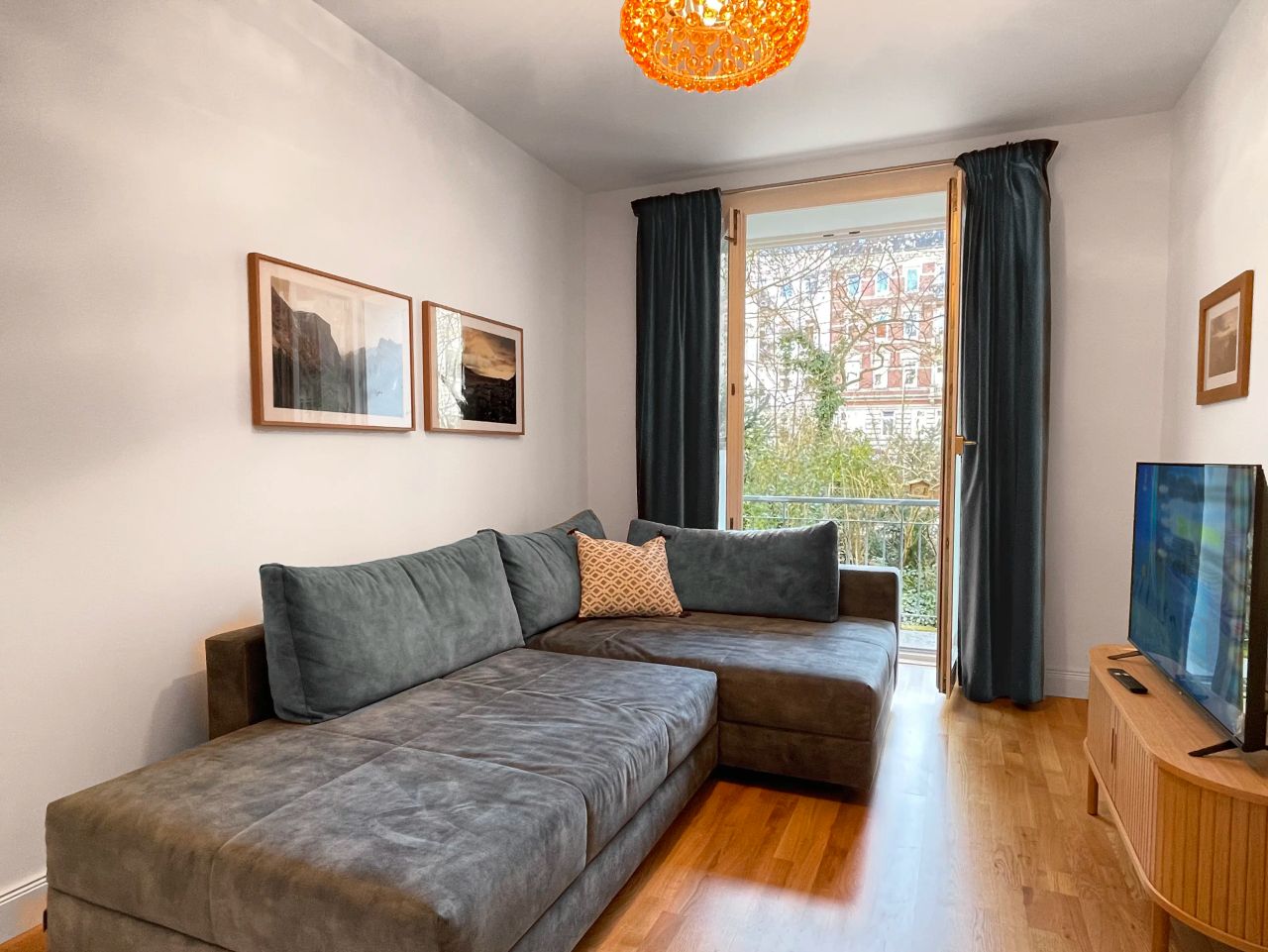 The 2.5 room apartment is located in a quiet one-way street in the trendy district of Eimsbüttel with many cafes, bars, restaurants and wrap and Sushi places near the pond at the park. Shops right next door on Osterstrasse. The apartment has just been renovated and has real oak parquet floors. The art-nouveau door handles have ebony handles, the bathroom with rain shower is of very high quality. There is a desk in the eat-in kitchen and a dishwasher. The apartment with washing machine, dishwashe...