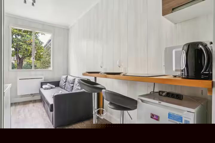 Located on the ground floor of a beautiful building in the sought-after district of Neuilly-sur-Seine, this 17 m² studio apartment is ideal for practical, comfortable city living. Designed to maximise space, it features a clever sofa bed, providing a comfortable sleeping area at night and transforming into a cosy seating area during the day. The fully-equipped kitchen allows you to prepare meals in a functional, modern setting, where every element has been designed to maximise comfort.