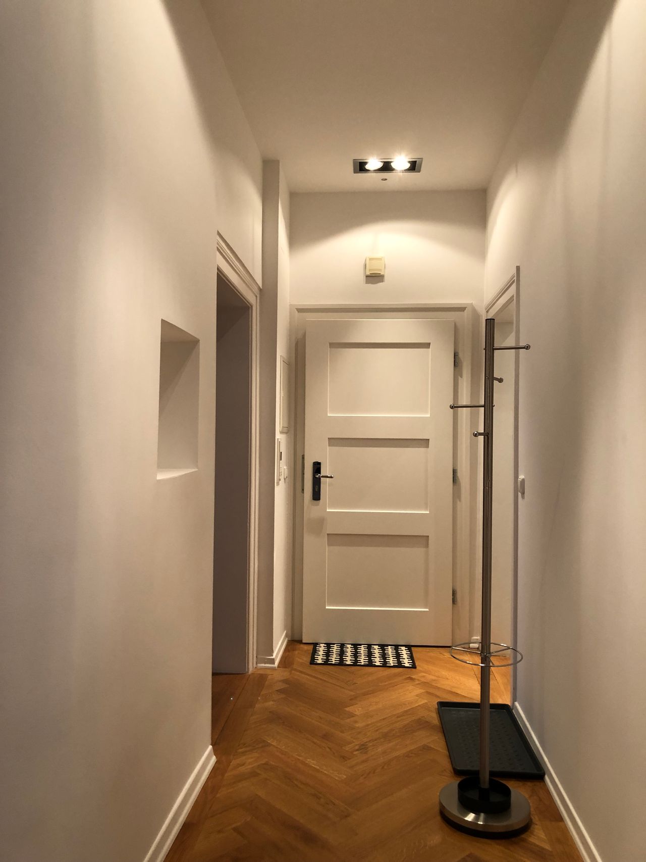 Newly renovated flat in the Glockenbach- quarter,76 sqm, quiet location with view of the Holzplatz. Large living room and bed room. The kitchen is open to a large dining area, entrance floor, and a south-west facing balcony. First move-in after renovation. Designer furniture. Rental period is limited to 12 month max. Included in the rent of 2600 Euro is heating, electricity, water, internet, and TV. Plastered white walls, wooden oak floors throughout, gray tiles in the bathroom , Jan Kurtz (...