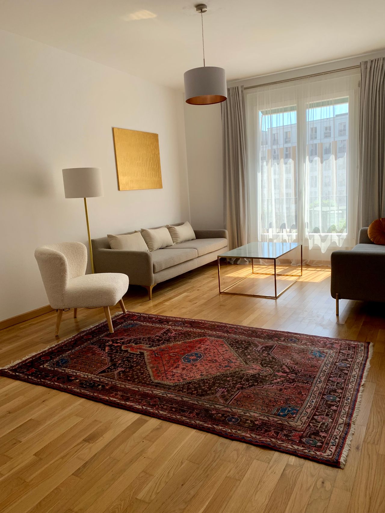 Das Apartment wurde 2022 renoviert und komplett neu möbliert. Sie finden alles vor, was Sie für einen angenehmen Alltag benötigen. Inbegriffen ist eine vollständig ausgestattete Küche mit Kühlschrank, Waschmaschine, Geschirrspüler, Küchenmaschine (von Neff und Bosch) usw., siehe Bilder. Bodentiefe Fenster bieten Ihnen einen rundum herrlichen Blick, teilweise direkt ins Grüne des Viktoria-Parks. Beide Bäder - qualitativ erstklassig eingerichtet - eines mit Wanne und Bidet, ein weiteres mit Dusche...