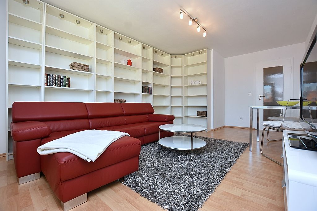 Die Wohnung befindet sich in der 5. Etage mit Aufzug eines gepflegten Mehrfamilien-Hauses. Das Wohnzimmer verfügt über ein Sofa, einen kleinen Essplatz und einen Flat-TV. Von hier ist auch der West-Balkon begehbar. Die Einbauküche ist mit einem Herd, Ofen, Geschirrspüler, einer Mikrowelle, einem Wasserkocher, einer Kaffeemaschine sowie sämtlichem Kücheninventar ausgestattet. Im Schlafzimmer befinden sich ein Doppelbett (1,60x2,00m) und ein geräumiger Kleiderschrank. Das sehr gepflegte Tageslicht...