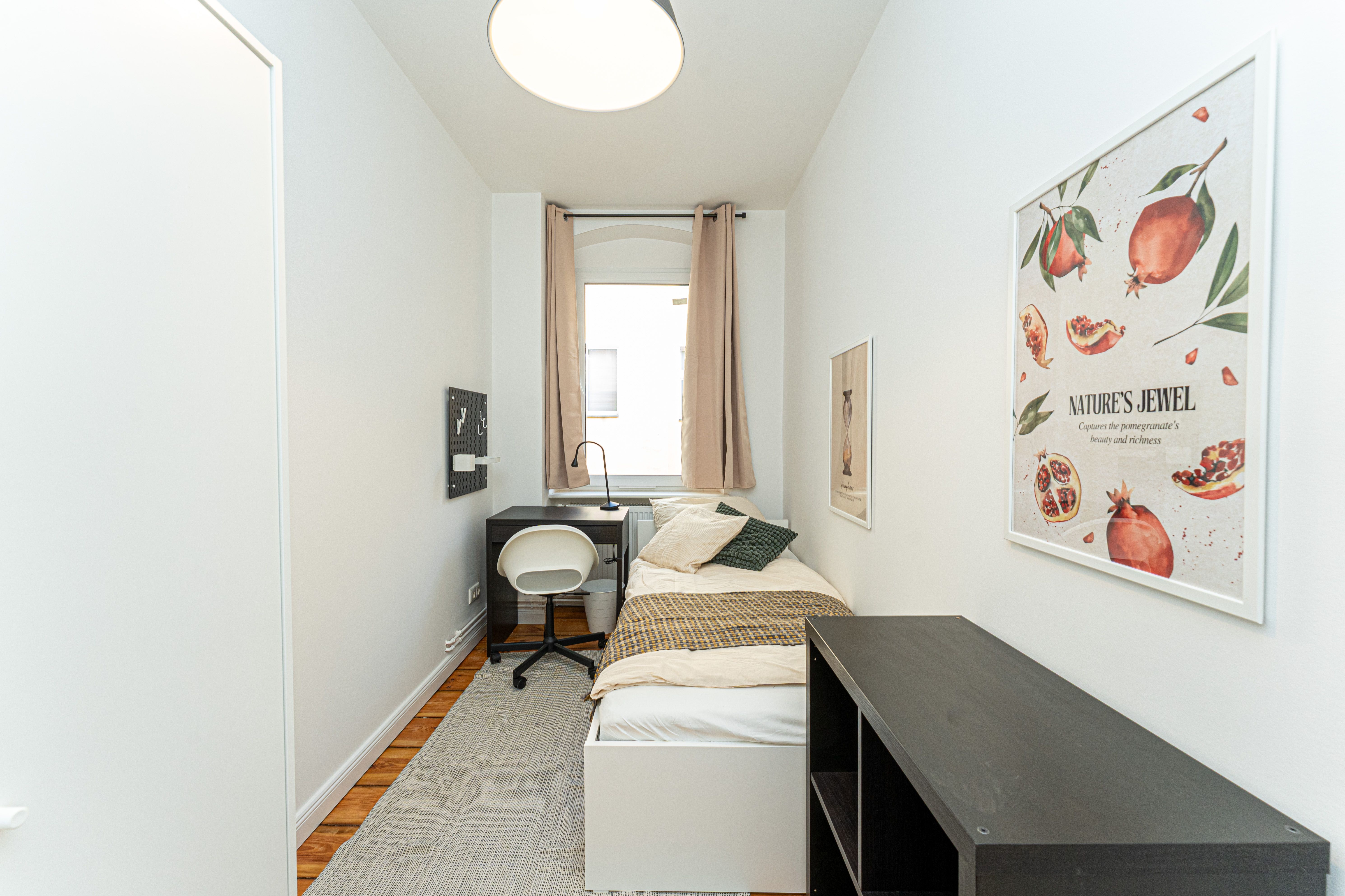 Modernly furnished room in a shared flat, including registration