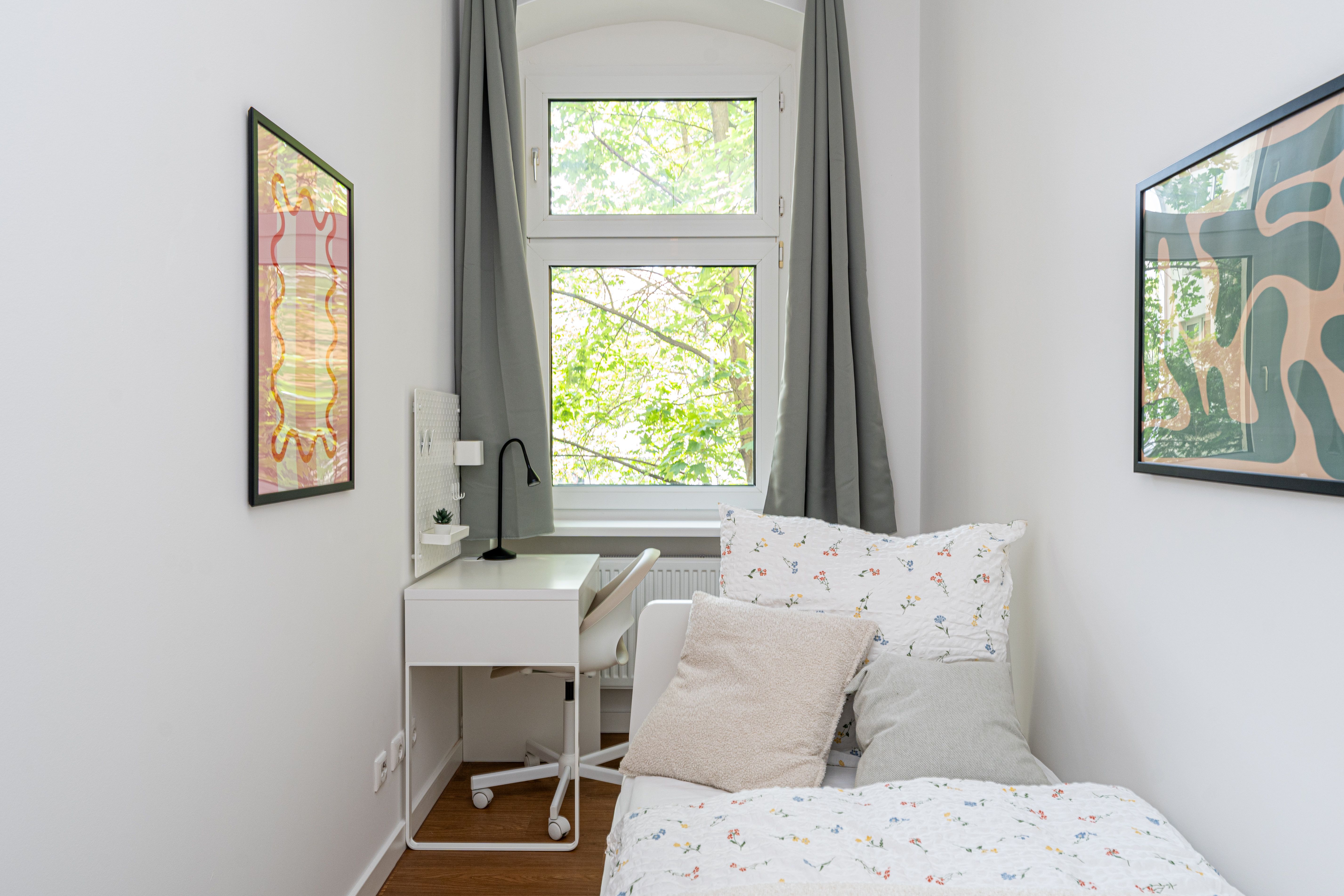 Modernly furnished room in a shared flat, including registration