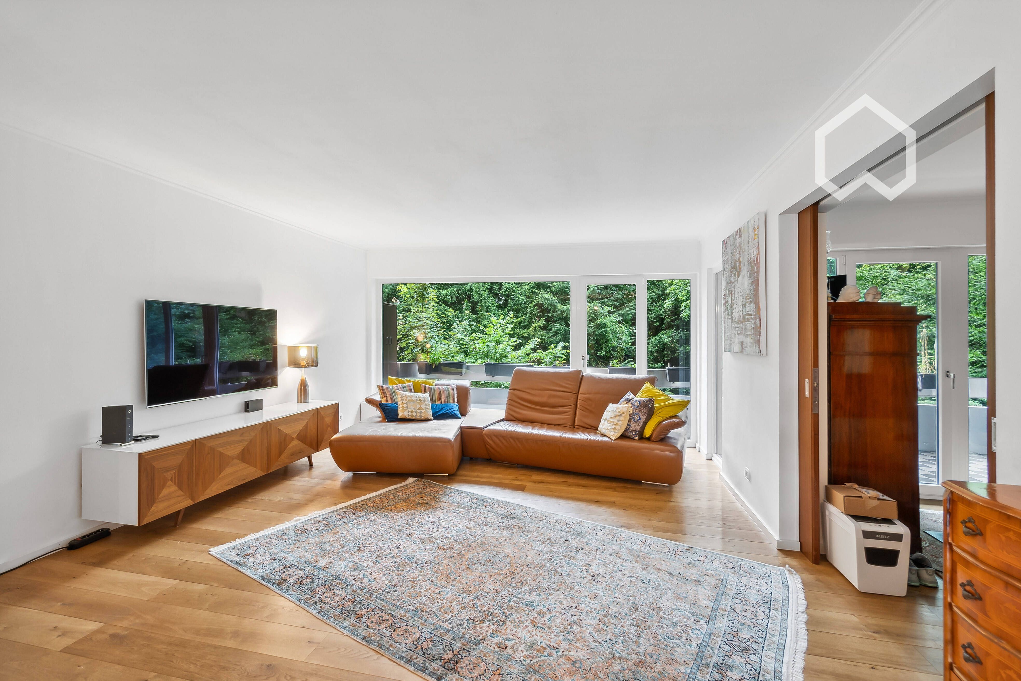 Contemporary city apartment with conservatory and a view of the greenery
