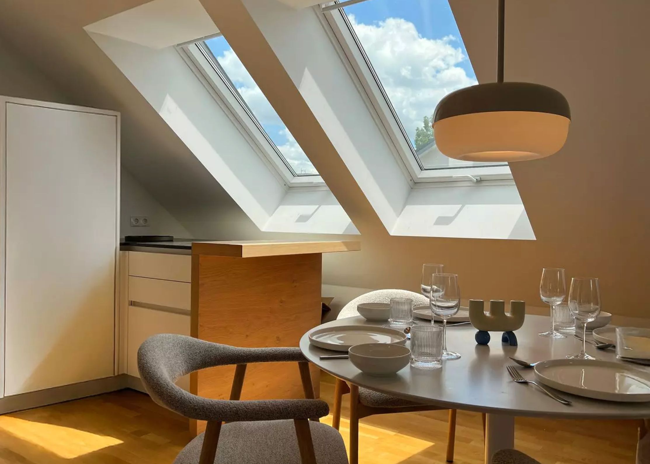 Modern apartment mezzanine (with 2 beds or a couch) inclusive of outdoor pool, co-working and gym in Munich Obersendling