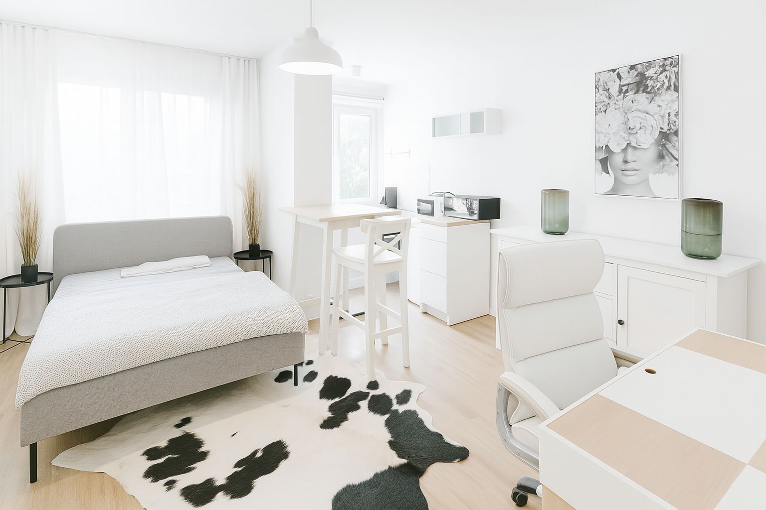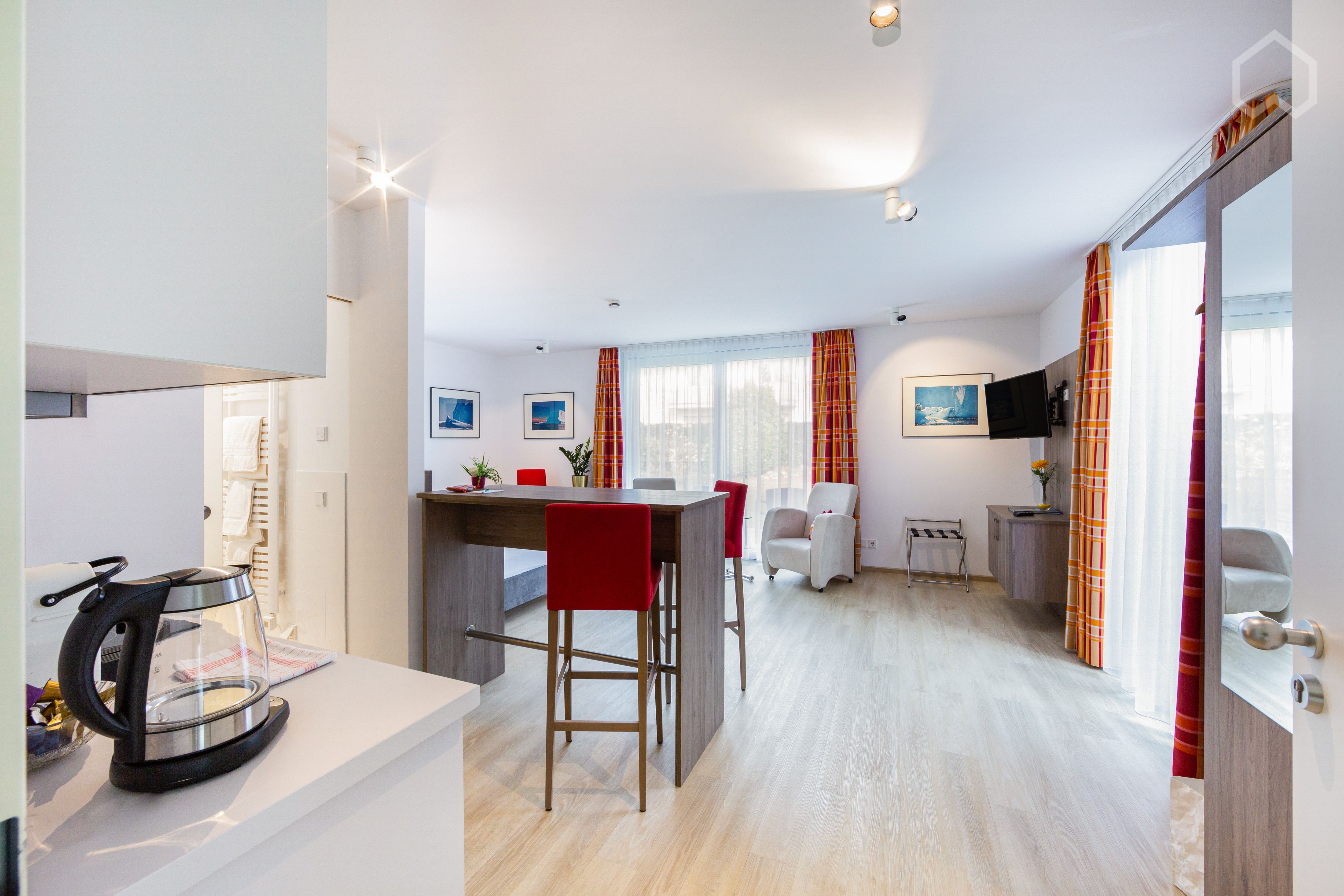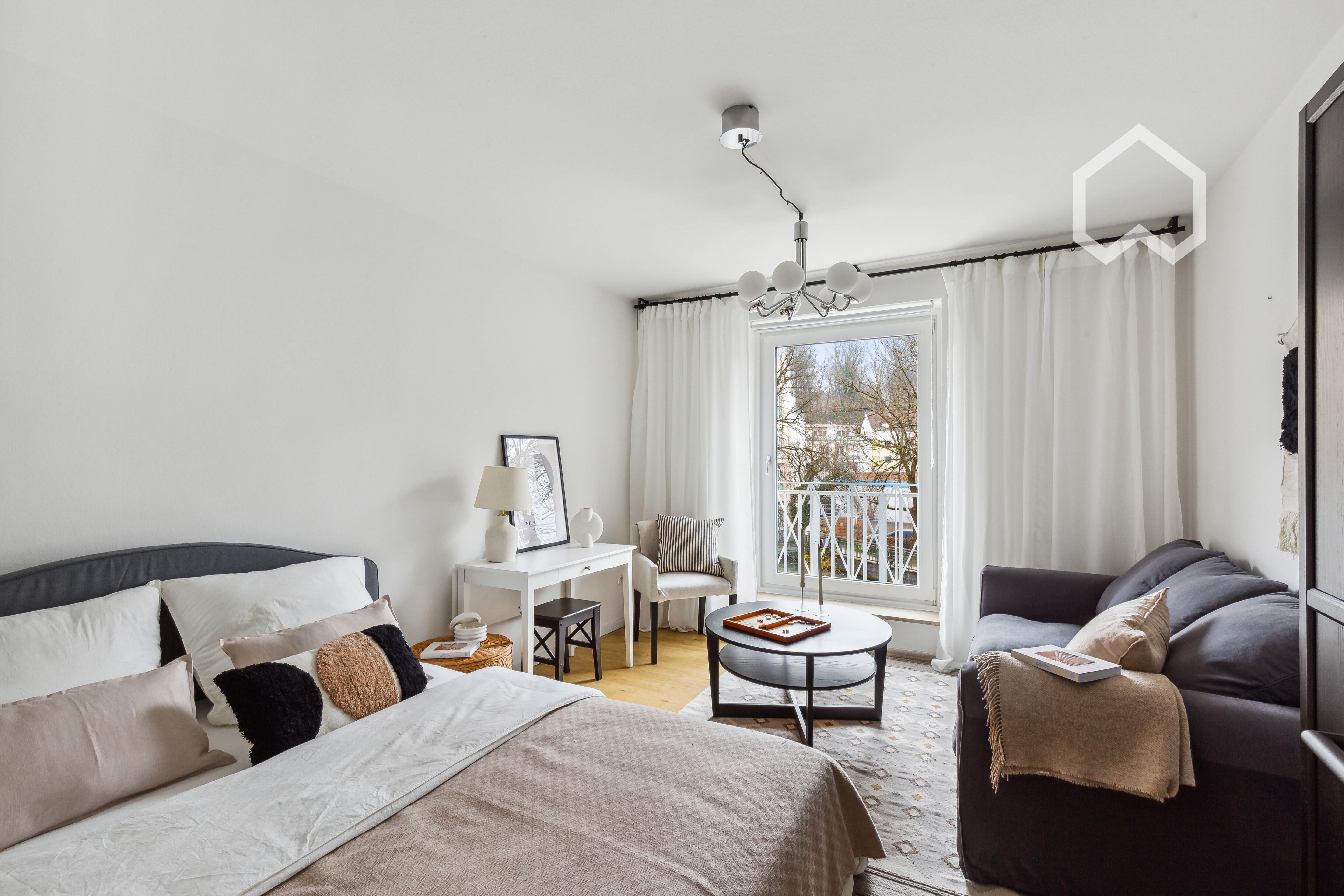 Stylish modern fully-furnished single room apartment with balcony and open kitchen in Neuhausen for 2 tenants